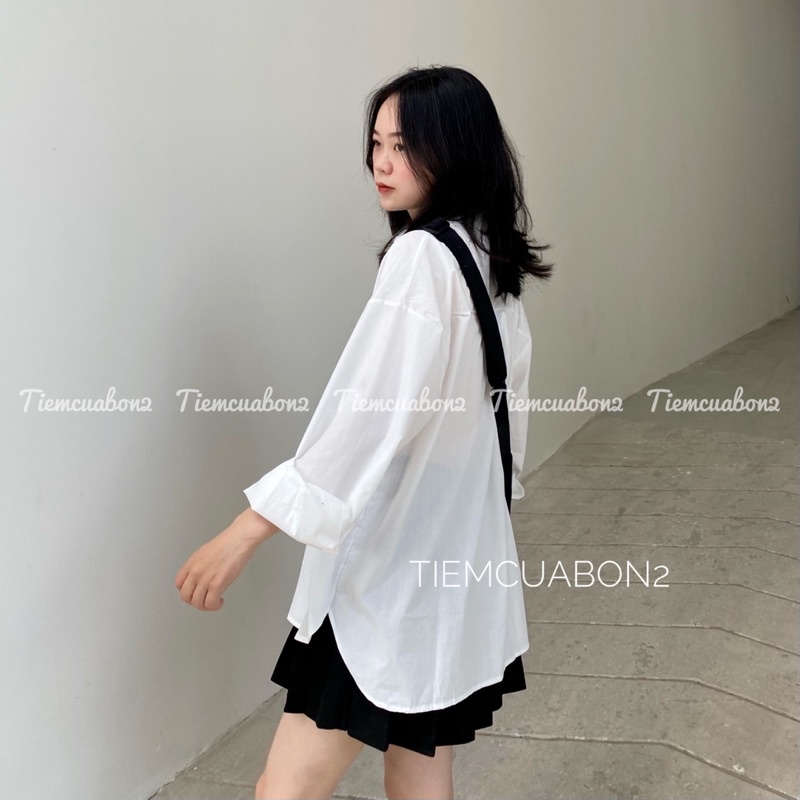 Áo Sơ Mi Trắng Form Rộng Có Túi Đi Học, Đi Làm, Công Sở