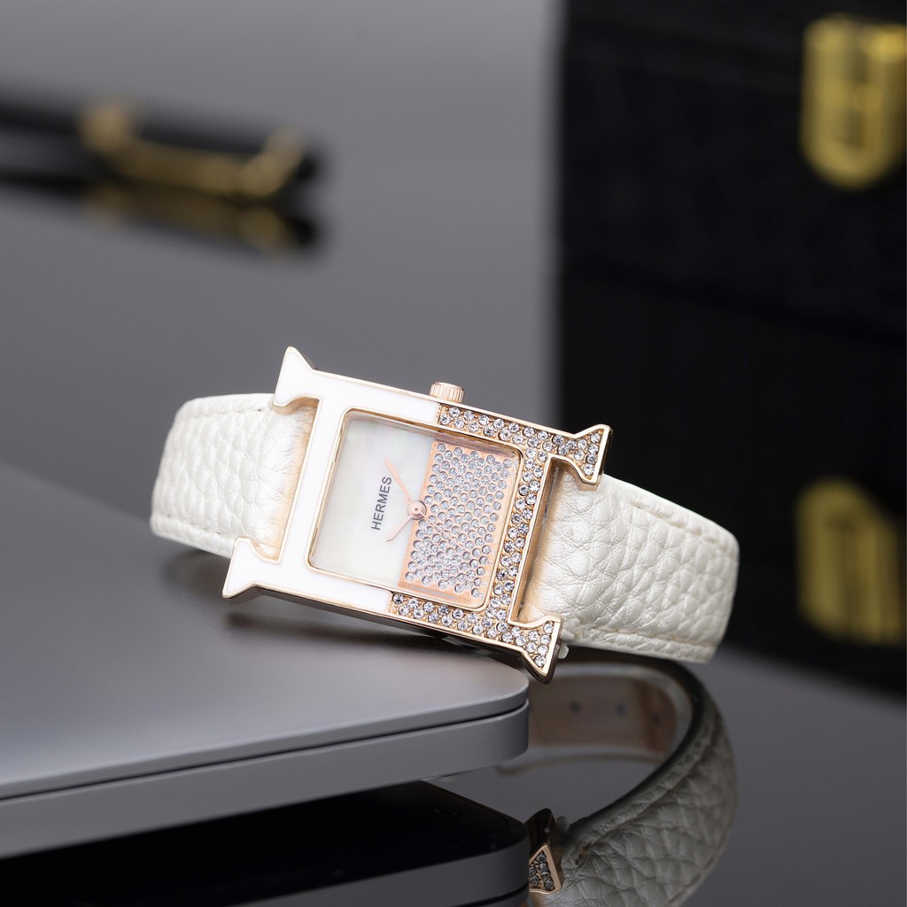Đồng hồ nữ HERMES dây da mặt vuông đính đá cao cấp full box DHN02 12Th free ship