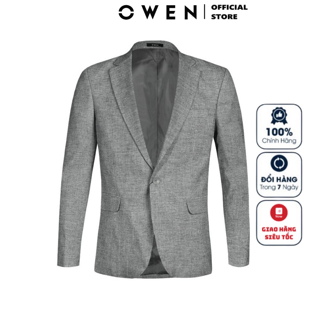 Áo Blazer Nam Owen BL210002 Áo Khoác Vest Công Sở Màu Xám Kẻ Chất Vải Gỗ Namu Mỏng Hàn Quốc Cao Cấp Dáng Regular Fit free ship