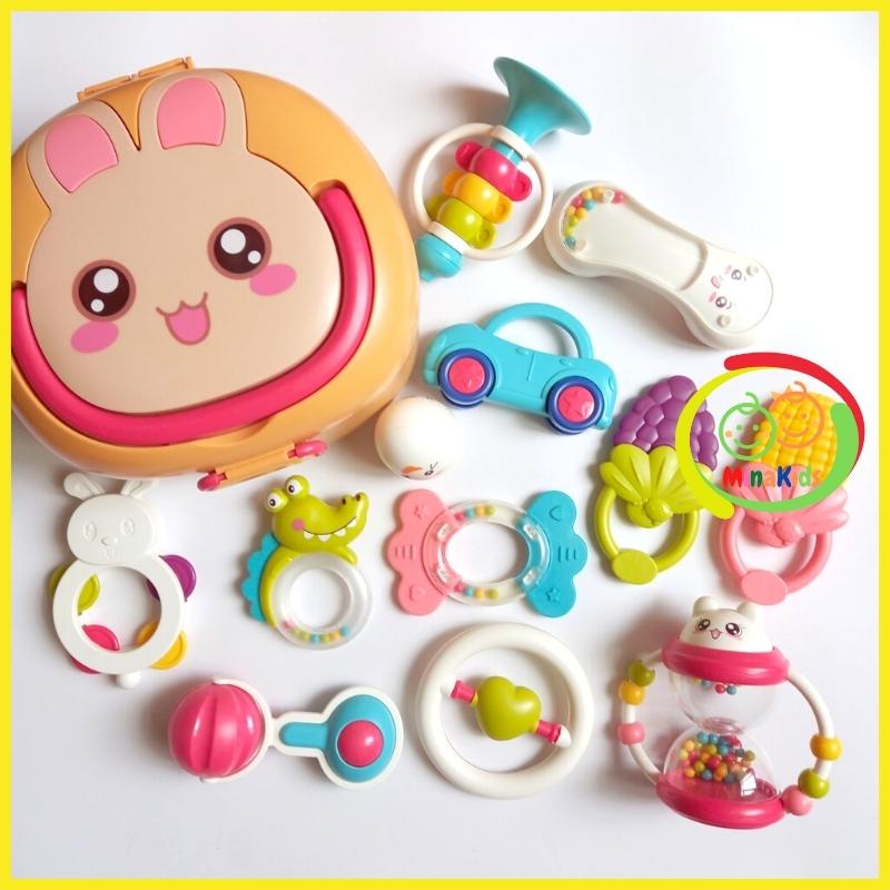Bộ Xúc Xắc Gặm Nướu Cho Bé Nhựa ABS An Toàn 10,12 Món Hộp Hình Thỏ Dễ Thương XX22 free ship